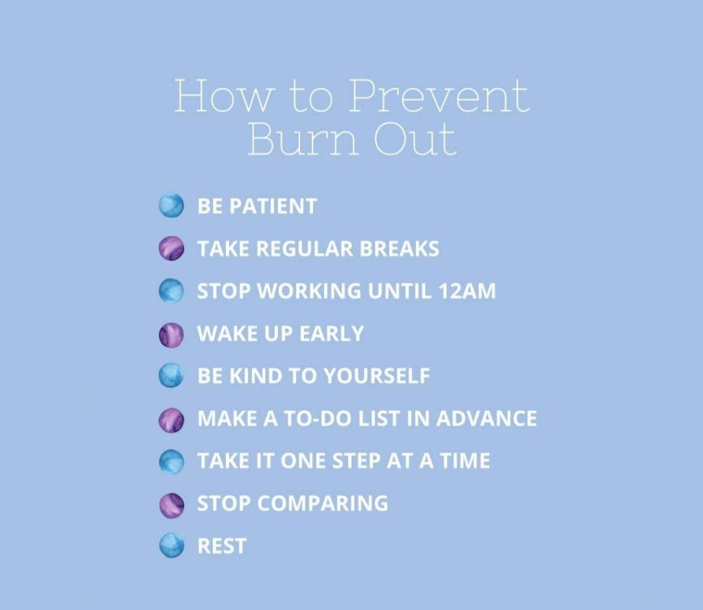 Now more than ever, more and more people are getting burned out. I believe it’s because the lines between work and home have been blurred—now that our work is at home. Here are a few steps to help prevent burn out. Rest when you can and when you should. Your health is of primary importanc